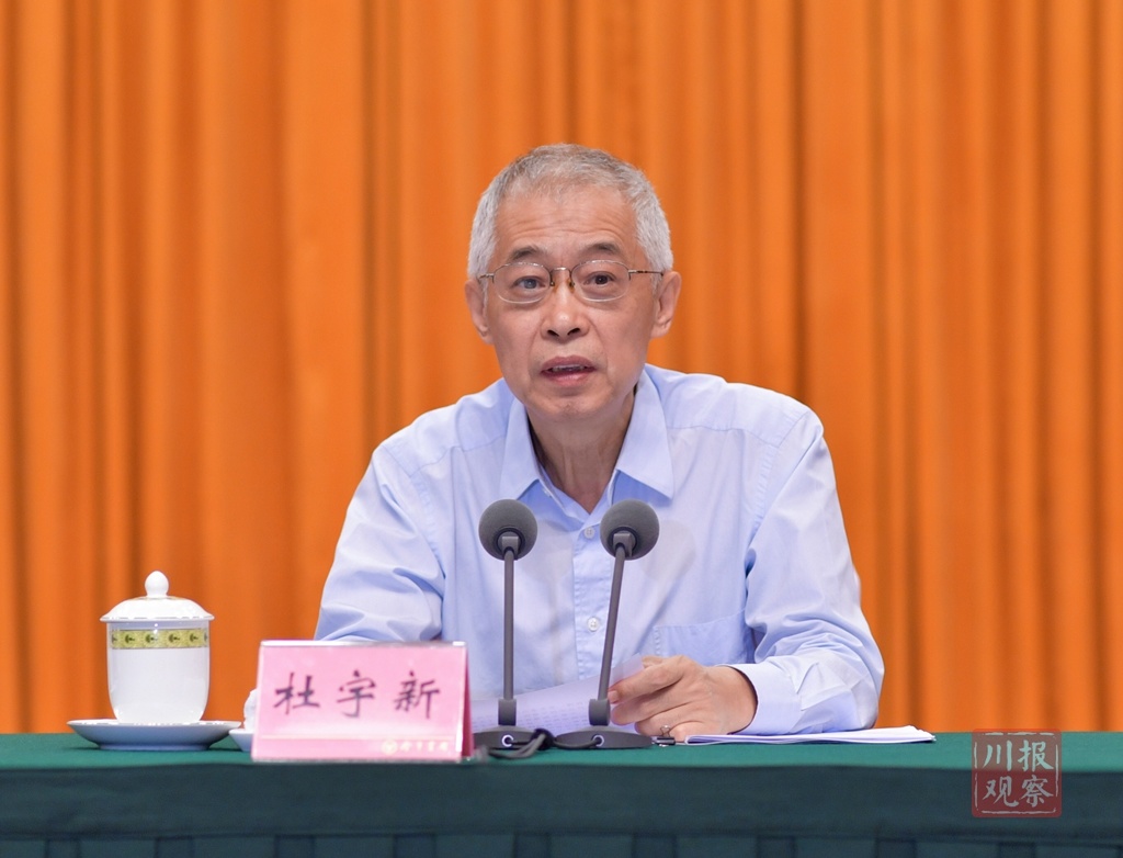 杜宇新在讲话中指出,主题教育开展以来,四川省委深入学习贯彻习近平新时代中国特色社会主义思想,按照中央部署要求,切实加强组织领导,始终聚焦根本任务,着力抓实重点措施,着力解决突出问题,有效推进中心工作,主题教育取得明显成效。下一步,要巩固第一批主题教育成果,认真抓好第二批主题教育。坚持不懈强化理论武装,持续深入学习贯彻习近平新时代中国特色社会主义思想,自觉用党的创新理论武装头脑、指导实践、推动工作。善始善终抓好整改落实特别是专项整治工作,系统梳理、对账盘点,上下联动、合力整改,跟踪问效、防止反弹,以实际成效取信于民。坚持把不忘初心、牢记使命作为永恒课题、终身课题,总结运用主题教育的有效做法,推动广大党员干部经常检视和解决违背初心使命的突出问题,以自我革命精神加强党的建设。认真贯彻党中央决策部署,把握总体要求、突出重点对象、加强分类指导、解决突出问题、落实主体责任,切实抓好第二批主题教育,确保整个主题教育有机衔接、持续推进、取得实效。