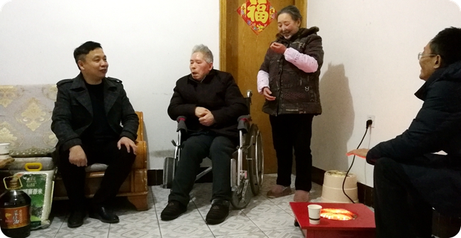 1月29日,市农科院院长罗仁革带领部分科技和管理管理人员,前往偏瘫在家的退休困难党员赵子信家中慰问,并送去米、油等慰问物质和慰问金。