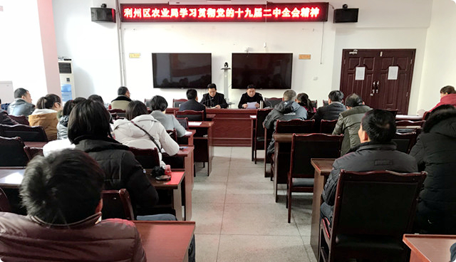 1月25日,利州区农业局机关党委书记何德忠主持召开党员干部专题学习会议,传达学习十九届二中全会精神。