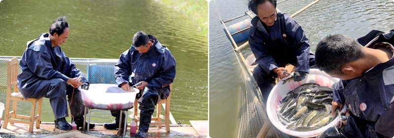 活动当天,红卫水库包租业主王平现场向大家讲解草鱼疫苗使用方法,手把手的传授疫苗注射技术,让水产养殖大户全面掌握草鱼免疫接种技术。