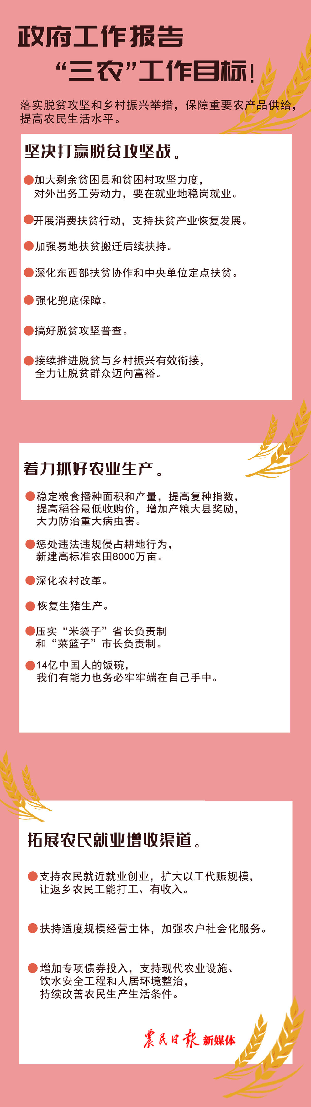 政府工作报告“三农”工作目标 --3方面16句话