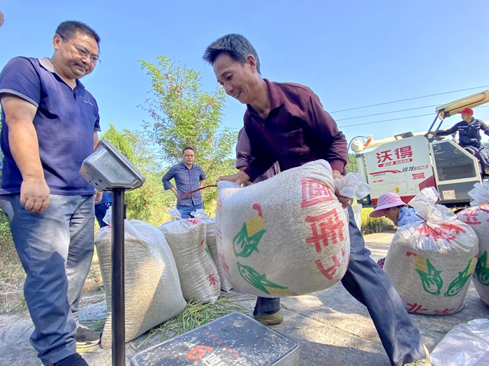 据农情调度统计,今年全市大春粮食作物播面329.59万亩,比上年增加近13万亩,虽受到了干旱和洪涝影响,但作物长势良好,水稻有效穗高,玉米秃尖少,现已全面进入收获期。截至9月22日,全市大春作物收获180万亩,收获进度正常。市农业农村局和国家统计局广元调查队在苍溪、剑阁大春示范区实地测产,水稻平均亩产645.9公斤,玉米平均亩产609公斤,分别较去年增加25公斤和17公斤,全市粮食作物亩均产量均较去年高,预计大春粮食总产量将达120万吨以上。