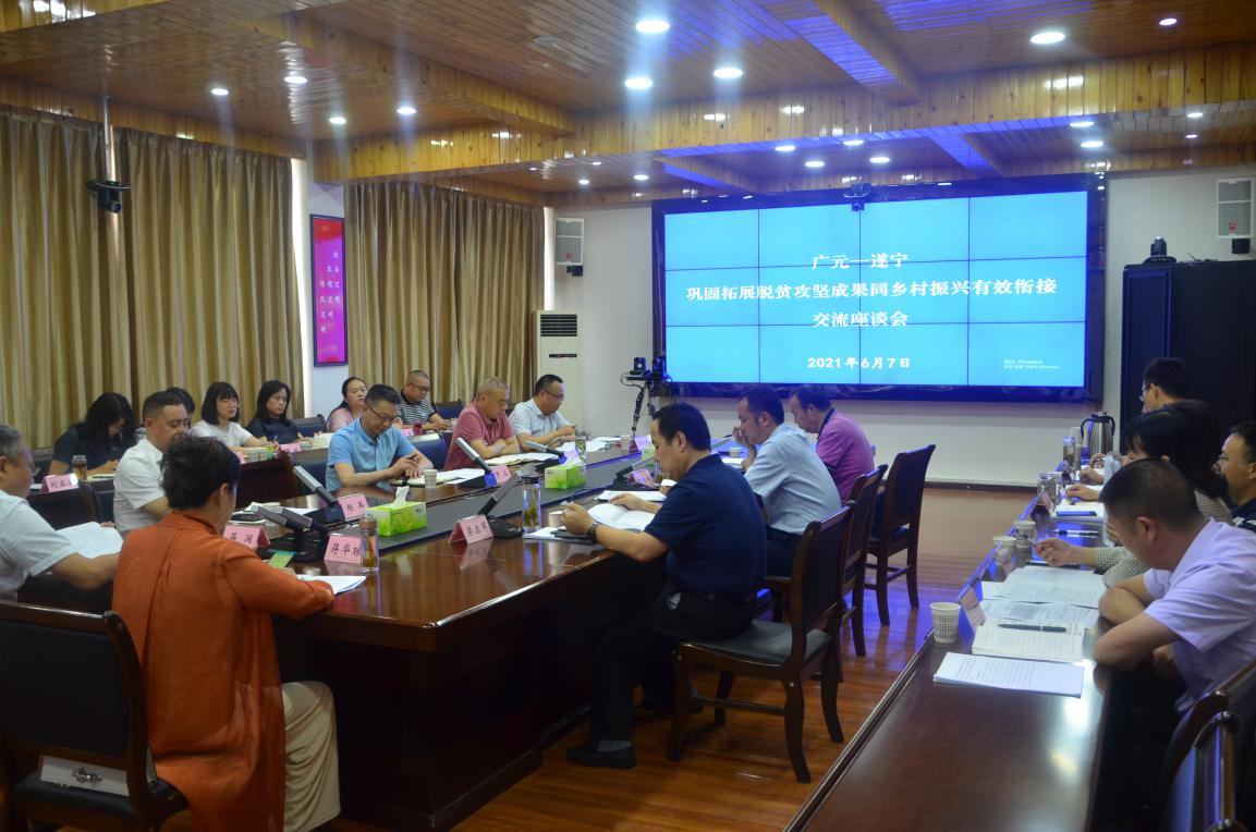 7日下午,在市乡村振兴局三楼会议室召开广元—遂宁巩固拓展脱贫成果同乡村振兴有效衔接交流座谈会。市乡村振兴局副局长叶林城主持会议,总工程师罗邦洪介绍广元市巩固拓展脱贫攻坚成果同乡村振兴有效衔接重点工作推进情况,机关党委书记梁启军介绍我市机构调整优化情况。双方就防止返贫动态监测和帮扶、“十四五”巩固拓展脱贫成果同乡村振兴有效衔接规划编制、有效衔接财政资金项目启动、资金统筹使用、重点帮扶村建设等工作进行了沟通交流。遂宁市乡村振兴局副局长杨兵代表考察组充分肯定我市重点工作推进的做法和取得的成效。