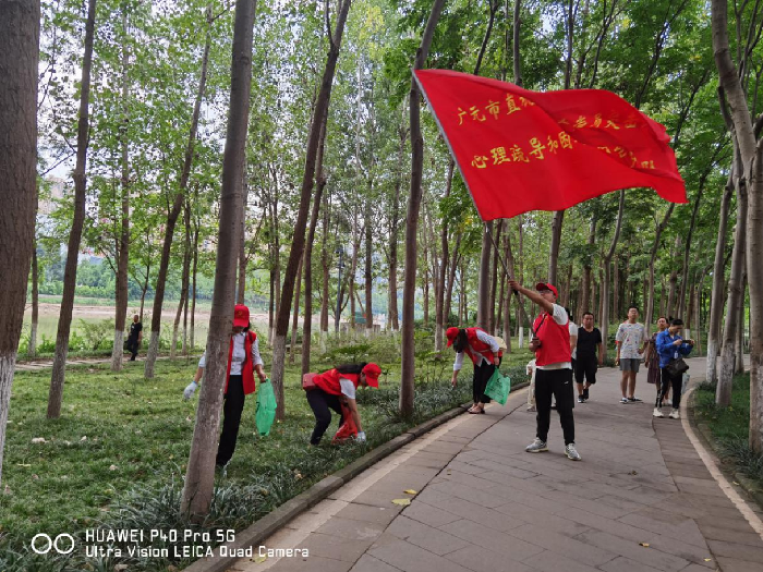 授旗仪式结束后,心理疏导和救助中队的队员们沿着苴国路路口到水柜沟沟口,清理绿化带里的烟头、白色垃圾、枯木断枝,修理遮挡行人视线的行道树枝和芦苇叶。队员们认真清理每一处卫生死角,清扫每一片废纸枯叶,只要有共产党员突击队旗帜飘过的地方,就多了一份整洁,多了一份老百姓的赞扬。在苴国路路口,一名队员一边拾起白色垃圾一边说“每当听到中国共产党党员之歌时,我的心情澎湃,精神振奋,自豪自己是一名共产党员”,同行的另一位志愿者队员说:“市领导在给共产党员突击队各队授旗时,看到一面面鲜红的旗帜迎风飘扬,我心里好激动,有一种热血沸腾的力量,那一刻我后悔自己年轻时没加入党组织成为一名光荣的共产党员”;在绿化带边,一名老党员队员边修剪着芦苇枝道边给旁边的年轻队员讲:“党员就是要在急难险重时候走在前作表率,就是要能干事、能吃苦、不怕脏、不怕累,否则就不是合格的党员......你们生在最好时代,自当倍加珍惜”;扛着队旗的年轻党员说到:“进入共产党员突击队,是对我党性的锤炼,我深感光荣。特别是自己在工作中遇到难题和挫折时会有懈怠,不知道如何前进的时候,就会想到自己是一名党员,不能被一些小小的困难和问题击败,我是党员,必须冲锋在前勇于攻坚”。队员们在绿道中忙碌的身影,成为了今天广元城区一道靓丽的风景。路过的老百姓看着整洁的绿化带,没有障碍物的行人道,竖起了大拇指“这才是具有先锋模范的党员同志们”。