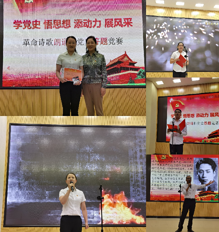 活动在《忆秦娥·娄山关》的朗诵声中拉开了帷幕,选手们以“歌颂建党100周年以来走过的辉煌历程和取得的丰功伟绩为主线”,深情朗诵了《南湖红船》、《党旗颂》、《沁园春·雪》、《水调歌头·重上井冈山》、《红船的方向》等诗词。党员同志们积极踊跃,争先恐后参与党史答题竞赛。一首首红色诗歌,一道道的党史试题,交织在一起,唤起了一段段刻骨铭心的党史记忆,激励起党员干部奋不顾身积极投身农业科研的奋发斗志。