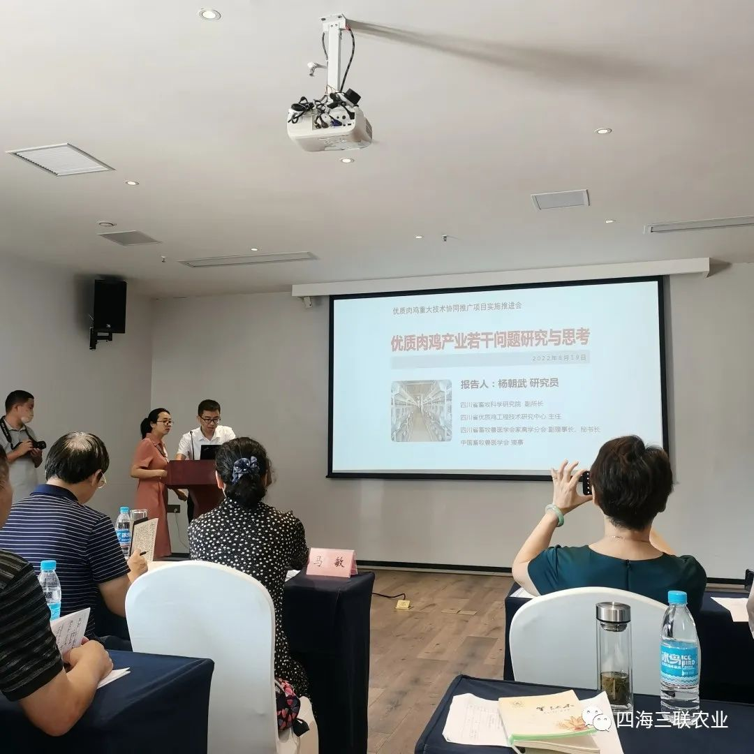 培训会上,四川三联家禽责任有限公司董事长、广元剑门关土鸡产业协会会长邹平,省畜牧科学研究院家禽研究所副所长杨朝武、余春林分别就《家禽的变革及携手共赢剑门关土鸡2.0时代》《优质肉鸡产业若干问题研究与思考》《无抗养殖》等作专题讲座。与会人员还对优质肉鸡(肉禽)产业发展现状及关注的若干热点、难点问题进行了交流,一致认为四海三联标准化养殖示范性强、联农模式效果良好、技术推广成效显著,值得学习和借鉴推广;纷纷表示愿齐心协力,携手合作,为推进四川优质肉鸡(肉禽)产业高质量发展作出积极贡献。