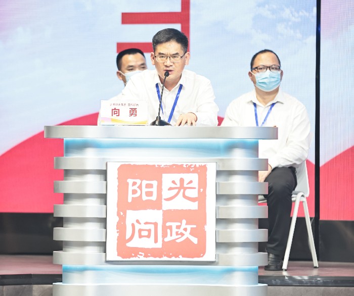 “请问你的工作职责主要是什么?履职是否到位?”“针对短片中反映出的问题,请问你们下一步工作将怎么做?”……主持人就短片反映的问题向被问政对象针对性发问。剑阁县、旺苍县、市市场监督管理局、市交通运输局相关负责同志现场作答,并表态采取措施立即整改。
