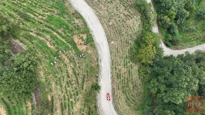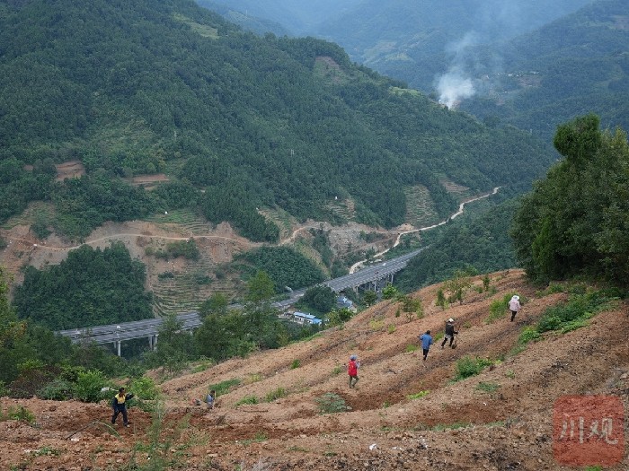 中午时分,前方山体出现“浙川共建白叶一号茶叶产业基地”的字样。我们意识到:2018年,全国首批接受浙江安吉黄杜村捐赠安吉白茶的广元青川沙州镇青坪村到了。