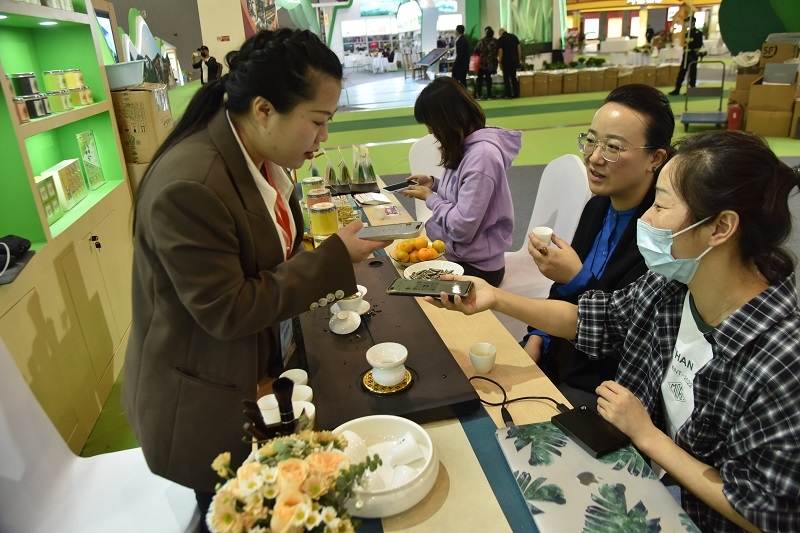 “不好意思,您说的那款茶叶昨天下午就已经卖光了,要不您再尝尝我们这款茶叶,要是喜欢,我们留个联系方式,后面快递邮寄给您。 ”11月3日,在第十一届四川国际茶博会青川展馆青川县鼎源茶业有限责任公司总经理李成一边递茶一边给前来咨询的顾客解释。