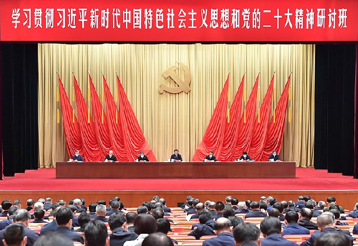2月7日,新进中央委员会的委员、候补委员和省部级主要领导干部学习贯彻习近平新时代中国特色社会主义思想和党的二十大精神研讨班在中央党校(国家行政学院)开班。中共中央总书记、国家主席、中央军委主席习近平在开班式上发表重要讲话。新华社记者 李涛 摄