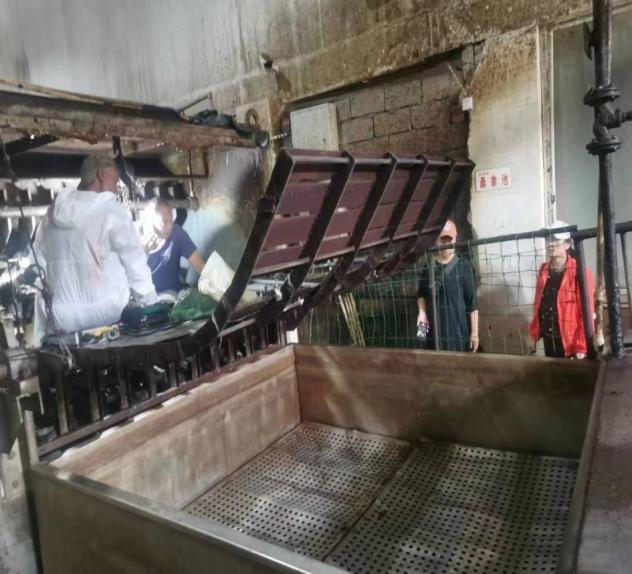 指导组一行深入昭觉县定点屠宰场晓川牧业有限责任公司,检查督导安全生产等工作,要求一是严格执行查验指定通道印章、隔离观察落地报告等制度;二是加强屠宰生猪有关检疫证明、耳标、健康状态、运输车辆备案情况查验;三是督促企业做好肉品品质检验和非洲猪瘟自检;四是对不按要求和规定程序开展入场查验、非洲猪瘟自检、厂区及运输车辆清洗消毒等工作的,坚决不予出具动物检疫合格证明;五是做好规章制度和记录工作,如消毒、无害化处理、动物隔离观察、“瘦肉精”和“非洲猪瘟”等违禁物自检;六是按规定和要求对屠宰场所进行定期消毒工作;七是对病死或死因不明的动物进行无害化处理工作;八是督促落实屠宰生产车间和冻库安全隐患排查工作落实情况。