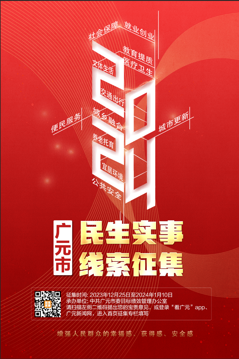 为深入开展民生保障提质行动,确保我市民生实事谋划工作更加顺应民意、反映民情、贴近民需,按照市委、市政府有关工作部署,12月25日起广元市委目标绩效办将通过“看广元”APP等平台,面向广大市民“线上”征集2024年市定民生实事线索建议。