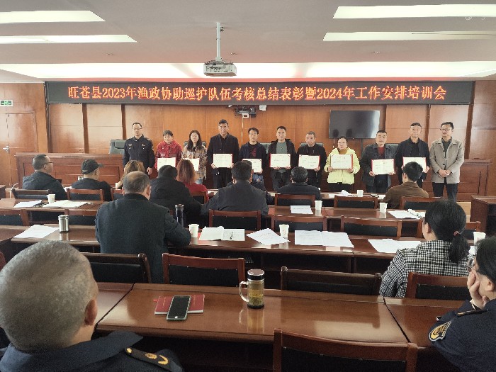 会上学习了《中华人民共和国长江保护法》《长江水生生物保护管理规定》《四川省长江流域休闲垂钓管理办法》等法律法规和禁捕禁钓相关政策规定;工作人员向护渔员详细解读了护渔员管理制度,介绍了休闲垂钓管理办法、禁用渔具和捕捞方法等知识。会议总结了渔政协助巡护队伍三年来工作开展情况,安排部署了2024年护渔工作,为渔政协助巡护工作中成绩显著的巡护人员颁发了荣誉证书,护渔员代表围绕所做工作、存在问题、下一步工作打算作了交流发言。
