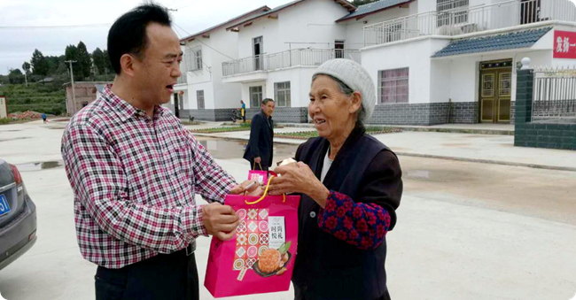 月到中秋分外明,人到佳节别样亲。为扎实推进新时期精准扶贫攻坚工作,9月20日,剑阁县农业局副局长母安彦、机关党委书记王发春、工会主席唐学元带领全局干部职工100余人,载着圆圆的中秋月饼和浓浓的扶贫深情,兵分三路分赴高观乡、西庙乡、盐店镇846户贫困户家中,开展“结对帮扶,中秋送温暖”慰问活动。