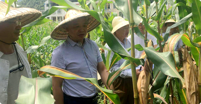 8月8日,以四川省品种审定委员会玉米专业委员会委员、绵阳市农科院院长王秀全为组长的四川省玉米区试考察专家组一行,前往广元市农科院旺苍白水镇科研基地,考察了我院粮油所承担的四川省玉米区域试验及联合体试验。广元市农科院院长罗仁革、副院长方军陪同考察。