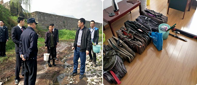 截止3月22日,共张贴禁渔通告1000张,发入宣传单3000张,悬挂横幅20条,出动车辆30余次,收缴网具45张,销毁“三无”渔船6艘;暂扣钓鱼竿125根,游钓装备45套。
