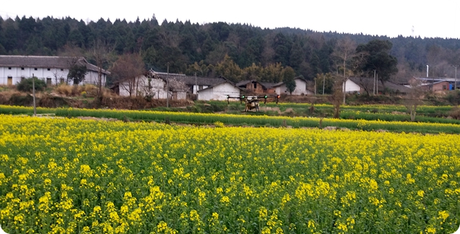 为认真抓好粮油生产工作,全面推行油菜病虫绿色防控和专业化统防统治,实现2019年粮油生产开门红,3月4日,北庙乡农业服务中心组织剑阁县西农油菜专业合作社开展的油菜“一促三防”飞机防治现场观摩会在该乡五星村举行。无人植保机在金灿灿的油菜地上空往来穿梭、喷洒农药,闻讯而来的数名群众无不称赞叫好。