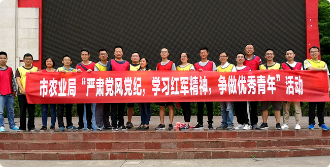 在“五四”青年节期间,市农业局组织青年干部开展以“严肃党风党纪,学习红军精神,争做优秀青年”为主题的纪念活动,目的是加强青年干部之间的沟通交流、增进友谊,激发干事创业激情、凝聚合力,以铁的作风纪律锻造铁的青年干部队伍。
