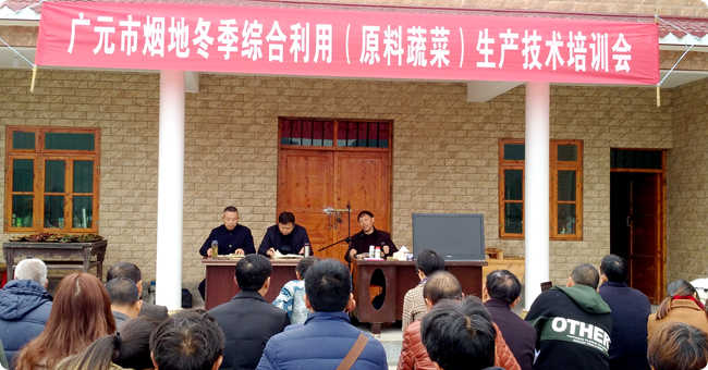 11月22日,烟地冬季综合利用(原料蔬菜)生产技术培训会在剑阁县蒲花村召开。广元市农业农村局、剑阁县农业农村局分管负责人,剑阁县农业农村局业务科室负责人,普安镇、羊岭镇农技干部,剑阁县、利州区原料蔬菜种植大户、家庭农场、专合社代表,四川省吉香居食品有限公司、广元市瑞康隆食品有限公司代表等70余人参会。