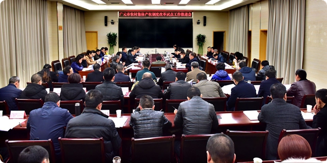 为认真贯彻落实省委十一届三次四次全会精神和市委七届七次八次全会精神,进一步提高思想认识,坚持问题导向,聚焦重点任务,切实抓好全市农村集体产权制度改革国家整市试点工作,确保2019年圆满完成试点任务,打好农村集体产权制度改革试点工作这场硬仗,1月15日,市政府组织召开全市农村集体产权制度改革工作现场推进会。副市长杨浩出席会议并讲话。会议由市政府副秘书长任守铭主持。各县区政府、广元经济技术开发区管委会分管负责人、各县区农工委主任、农业局主要负责人和分管负责人、广元经济技术开发区管委会农工办主任、市农业局主要负责人和分管负责人;市农村集体产权制度改革领导小组成员单位负责同志等70余人参加了会议。