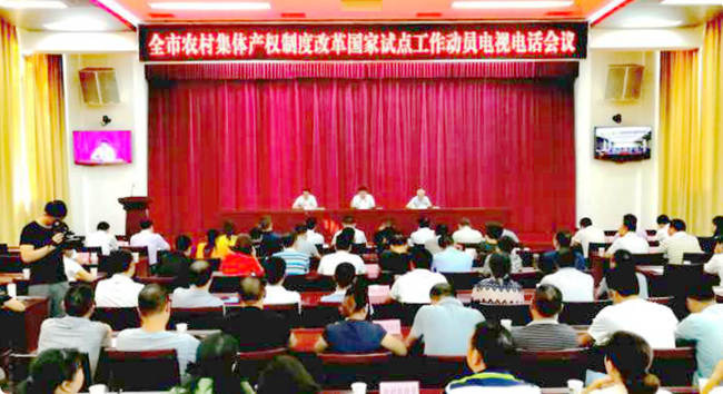 今年6月,我市成功申报为全国50个整市推进试点市之一。为贯彻落实《农业农村部关于确定农村集体产权制度改革试点单位的函》和《中共广元市委广元市人民政府关于稳步推进农村集体产权制度改革的实施意见》精神,全面动员部署我市农村集体产权制度改革整市试点工作,8月17日,市政府组织召开全市农村集体产权制度改革整市试点工作动员电视电话会,主会场设在市政府会议厅,各县区、广元经济技术开发区设分会场。市政府副市长杨浩、市委副秘书长严广、市级有关单位负责人、市农村集体资产清产核资工作指导小组成员、各县区党委和政府分管负责人、广元经济技术开发区党工委、管委会分管负责人、各县区有关单位负责人、各乡镇党委或政府和涉农街道党工委或办事处主要负责人、分管负责人等参加了会议。会议由市委副秘书严广长主持。
