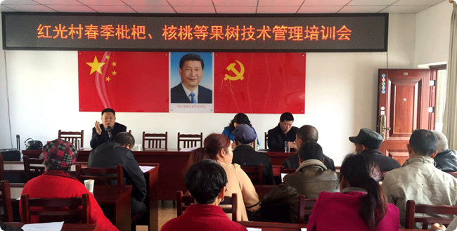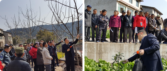 培训采取理论讲述和田间示范相结合的方式进行,果业技术专家樊学锋首先对春季果树管理的重要性进行了宣传,并结合村发展枇杷树、核桃树的实际情况,对果树管理技术要点进行了系统深入的讲解。为取得实效,深入田间示范,现场挑选出不同树龄、不同树势的果树作为例子,有针对性地讲解浇水、施肥、定干、防抽条及病虫害防治等管护措施,对不同果树如何整形修剪、怎样嫁接新枝等进行示范,一一解答果农在果树管护中遇到的疑难技术问题。经统计,此次共计培训人员50多人,发放春季果树管理技术资料100余份。