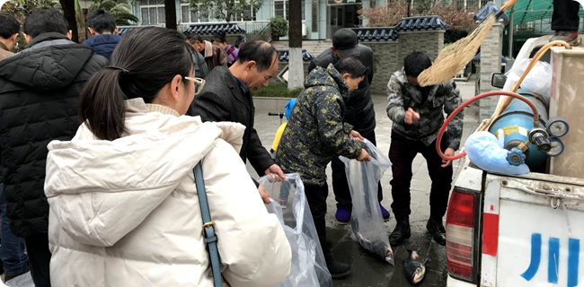 在春节来临之际,为让广大市民更加了解和支持“两湖”生态渔业发展,1月25日、31日上午,广元市农业农村局协调嘉桓渔业有限公司在城内居民小区开展“两湖”有机鱼推销活动。当日“两湖”有机鱼的优良品质受到广大市民的热烈追捧,先后运达的近2000斤花鲢被现场居民一抢而空。市渔政管理部门则向群众介绍了相关情况:“两湖”有机鱼是亭子湖、白龙湖不投喂饲料、化肥、添加剂等物质天然生长的生态鱼,“两湖”鲢鳙鱼已连续两年顺利通过有机认证。