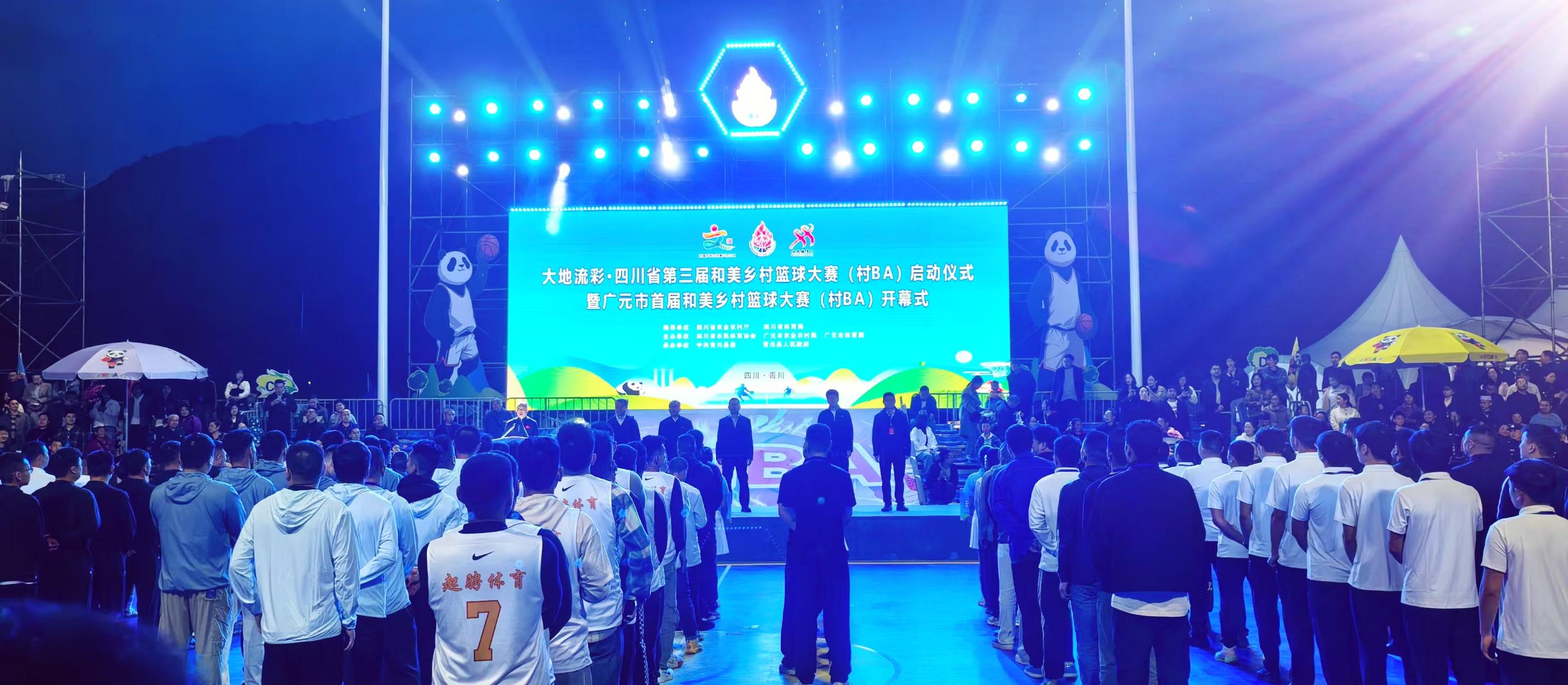 2025年4月26日晚,在省农业农村厅、省体育局指导下,由省农民体育协会、广元市农业农村局、广元市体育局主办,青川县人民政府承办的大地流彩·四川省第三届和美乡村篮球大赛(村BA)启动仪式暨广元市首届“村BA”开幕式活动在青川县蒿溪回族乡地坪村篮球公园开幕,市委常委、副市长魏大勇,青川县委书记李方甫致辞,省农业农村厅总畜牧师李春华出席活动并宣布开幕。广元市青川县代表队与绵阳市三台县代表队作为特邀队伍,为活动呈献了一场精彩纷呈的高水平揭幕战。开幕式当晚,除篮球比赛外,还举办了以“推动移风易俗,树立文明乡风”为主题的村晚,展现乡村文化风采。