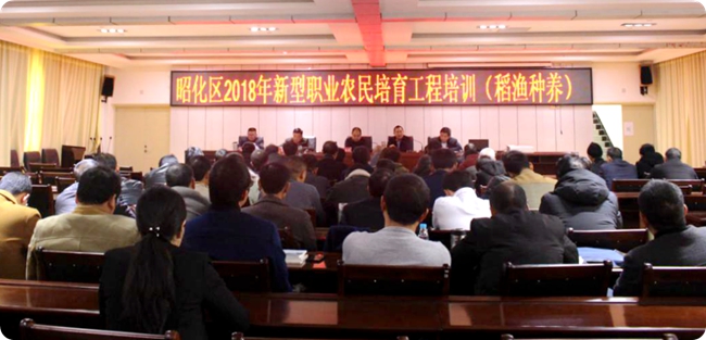 11月25日,昭化区2018年新型职业农民(稻渔种养)培训班正式开班。区农业局局长张文茂参加开班典礼并讲话。此次培训邀请了四川省水产局工程师刘雪漪、四川省水产局工程师徐垚峰、四川省水产研究所研究员杜军、广元市农业局工程师苟忠贵、广元市农业局高级工程师李宏等专家授课。全区51名稻渔种养大户参加了培训。