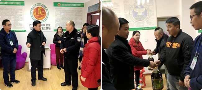 12月24日上午,利州区农业局机关党委书记何德忠、办公室干部母金香来到宝轮社区戒毒康复工作站,专程慰问走访困难戒毒人员和社工。宝轮派出所分管副所长李俊林陪同慰问。