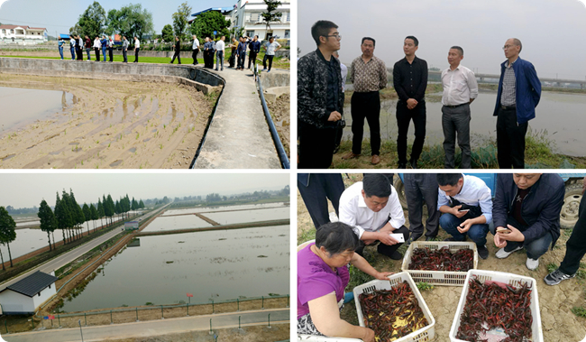 考察组先后到隆昌市全国稻渔综合种养示范基地、崇州市万亩稻渔示范基地、邛崃市稻渔示范基地、江油市贯山镇全国稻渔综合种养示范基地考察学习。考察期间,当地渔业部门毫无保留地详细介绍了发展稻田综合种养的创新发展思路、培育新型经营主体、推进标准化生产、产业延伸融合发展等经验以及发展稻田综合种养产业的经济效益分析。