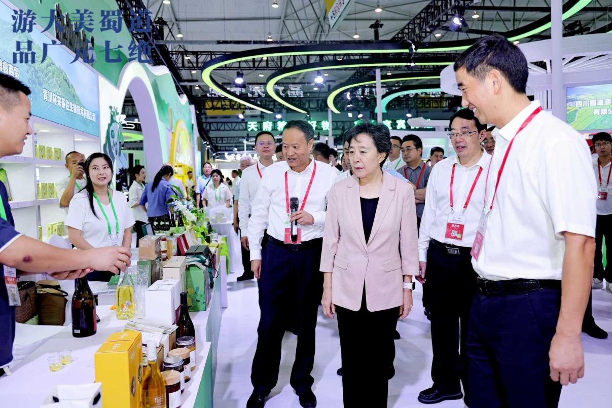 4日上午开幕式结束后,省人大常委会副主任祝春秀一行来到广元馆边走边看,与参展企业负责人亲切交流,仔细询问产品的生产规模、市场销售、品牌保护及带动农户增收等情况。她对广元市立足生态优势,做强做优特色农业产业,精心打造“广元七绝”区域公用品牌的做法和成效给予了充分肯定,希望广元市继续坚持绿色发展理念,进一步强化科技支撑,延伸产业链条,严把质量安全关,不断提升“广元七绝”的品牌影响力和市场竞争力,让更多优质安全的广元特色农产品走出四川、走向世界。