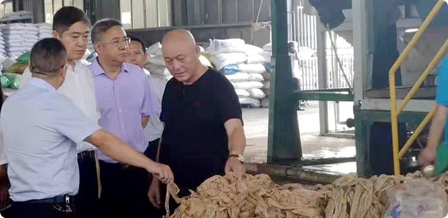 邹自景一行来到广元市供联致顺再生资源有限公司,在企业生产车间查看了整个生产现场和工艺流程,先后听取了广元市农业农村局副局长蒲友松及该企业负责人关于全市废弃农膜收集和处理体系建设工作及企业生产经营现状的汇报。