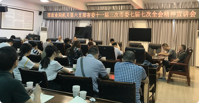 8月10日,局机关六支部组织所属5个科站全体党员、干部职工在局三楼会议室召开了省委十一届三次全会、市委七届七次全会精神宣讲会。支部书记曾光荣主持会议。市农业局局党组成员、副局长何治做了专题辅导。