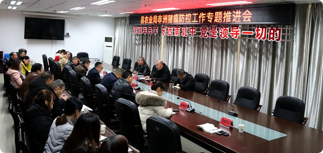 12月20日上午,苍溪县农业局组织召开专题工作推进会,再次对非洲猪瘟防控工作进行再安排、再部署、再落实。