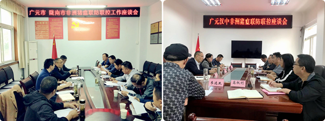 在签订非洲猪瘟联防联控协议前,我市与陇南、汉中两市就非洲猪瘟防控工作召开了座谈会,与会双方都介绍了本市非洲猪瘟工作防控工作的开展情况,并对非洲猪瘟联防联控工作机制进行详细磋商,最终达成了对非洲猪瘟进行联防联控的共识。