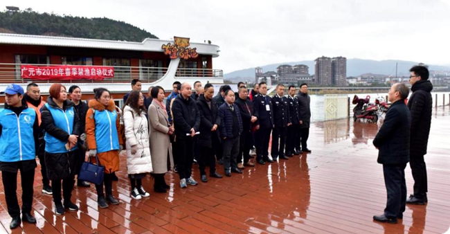 3月1日上午,广元市农业农村局组织市县区渔政执法人员、渔业自然保护志愿者、新闻媒体等代表,在老城皇泽码头举行了2019年春季禁渔工作启动仪式。