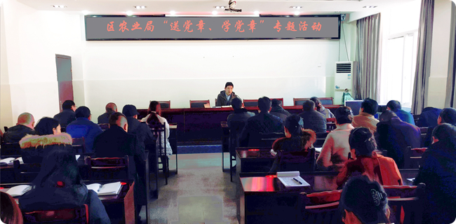 2月22日,朝天区农业局组织召开党员干部会,开展“送党章、学党章”活动,将《中国共产党章程》送到每位党员手中,并组织党员集中学习党章,认真对党章进行宣讲解读。