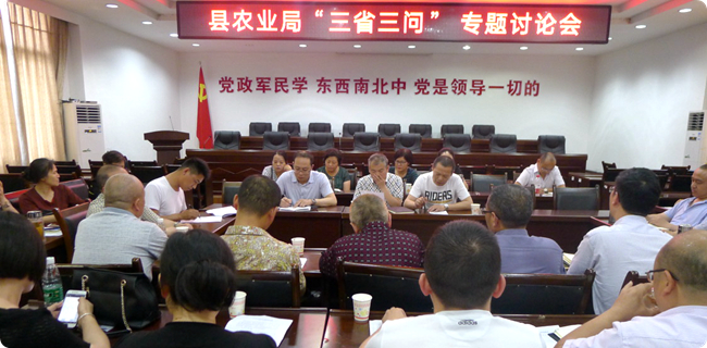 5月17日,苍溪县农业局以各支部为单位,开展“三问三省”主题大讨论。会上,机关党员以“省党性、省职责、省作风,问初衷、问不足、问成效”,“自省该做什么、做了什么、结果如何、还要做什么?”进行讨论发言。每一位党员干部以自我岗位特点,结合工作,找问病、谈想法、理思路、提建议、感党恩。各支部党员表示,此次活动,促进自我反省、自我认识、自我修正。在今后的工作中,要不时反思自己,提高思想认识,珍惜党和人民赋予的权力,积极在各自的岗位上争先创优,以实际行动推动苍溪现代农业强县发展。整个讨论会气氛热烈,热情洋溢,达到了“三问三省”理想的效果。