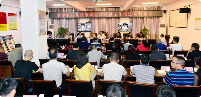 5月14日,广元市农业局党组召开全市农业系统政风行风建设工作推进视频会议。会议由市农业局党组书记、局长朱国勇同志主持。局领导班子成员、局属各单位负责人、机关各支部书记在主会场参加会议。各县区农业局分别设置分会场,县区农业局领导班子成员、各站股室负责人参加会议。