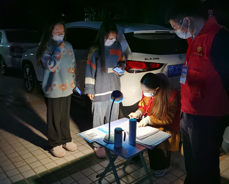 市财政局党员志愿者在皇泽寺社区兴和丽景小区协助开展核酸检测、人员登记等工作。