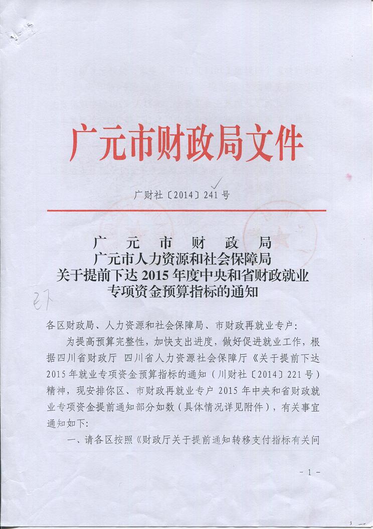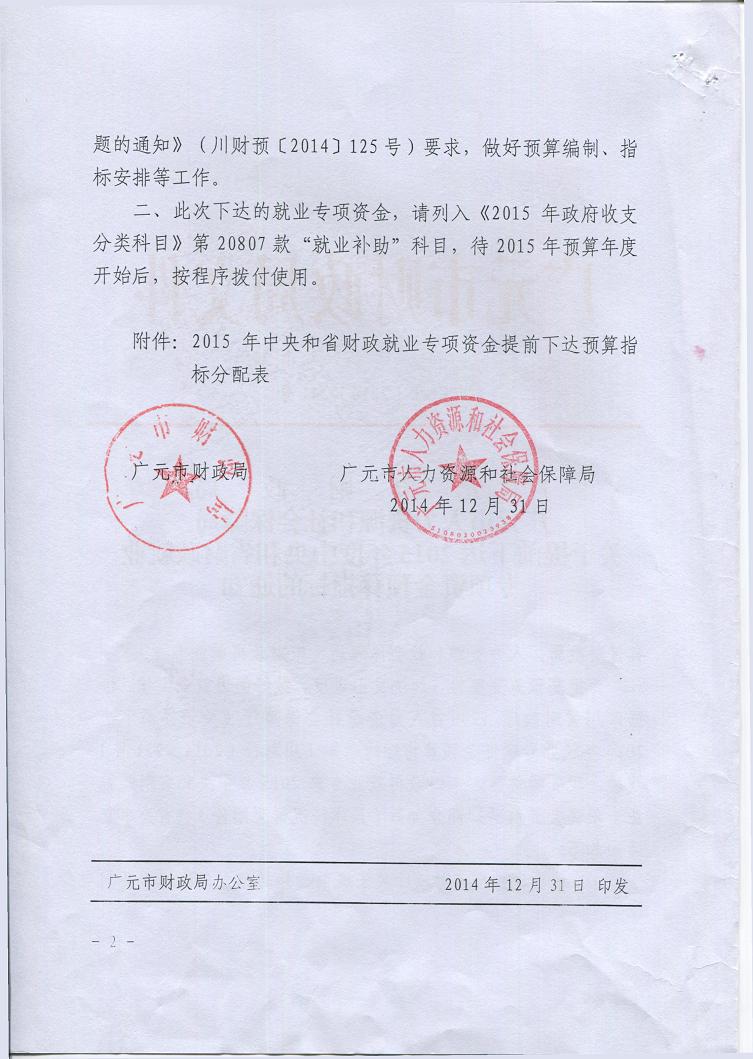 首页> 专项资金 > 提前下达2015年就业专项资金