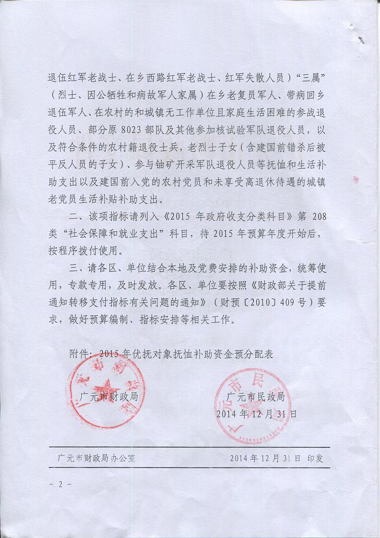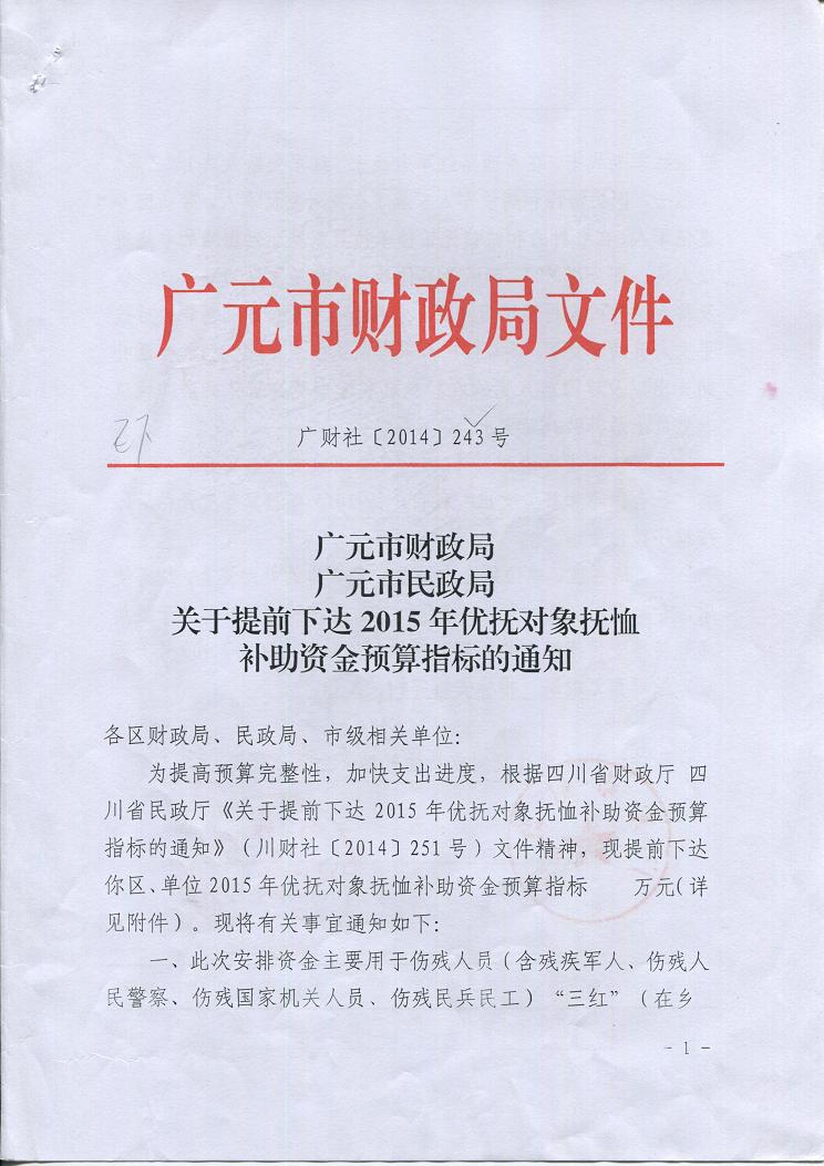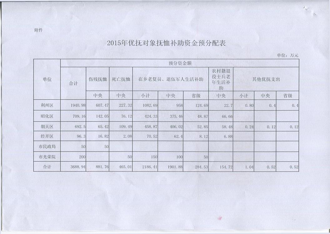首页> 专项资金 > 提前下达2015年优抚对象抚恤补助资金