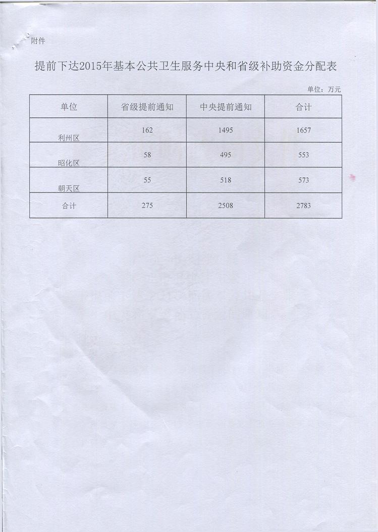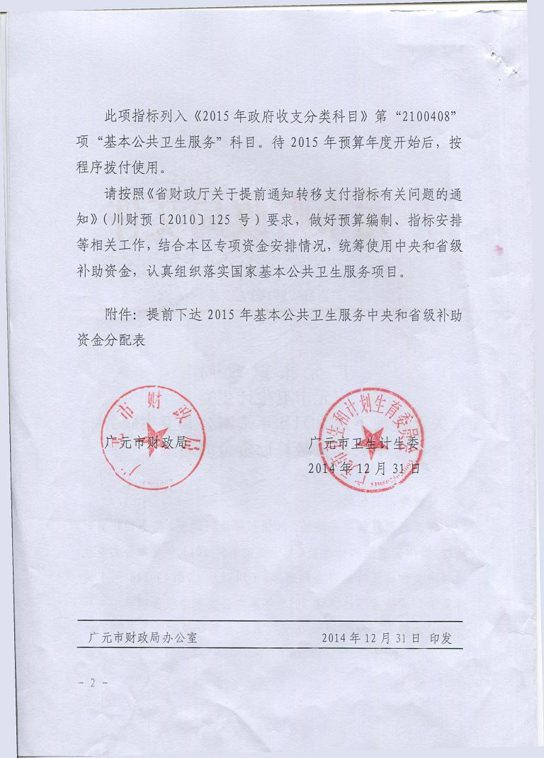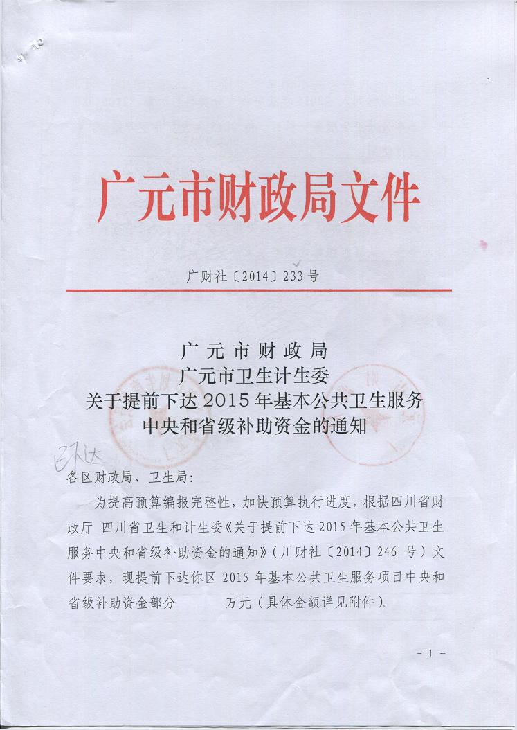 提前下达2015年基本公共卫生补助资金