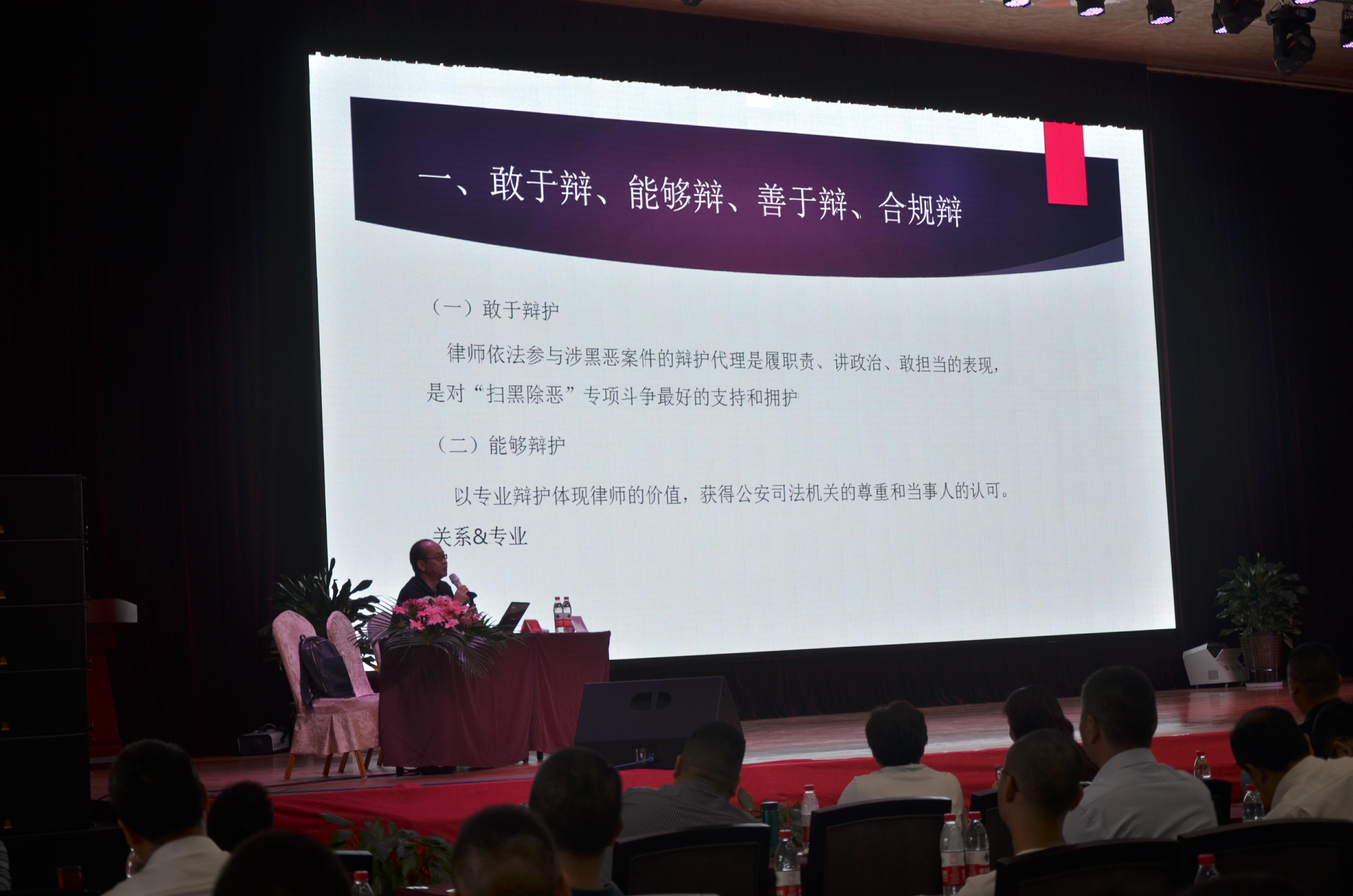 本次培训邀请四川刑事辩护协会会长、法学博士袁志以《涉黑案件辩护要点及技巧》为主题,为与会人员作了专题讲座。