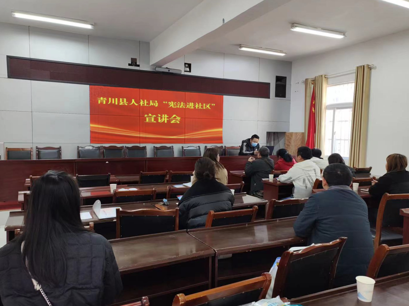 为进一步加强法治宣传教育,提高群众法治素养和守法意识,12月7日上午,青川县人社局联合县民政局在关庄镇开展了宪法宣传进社区活动。