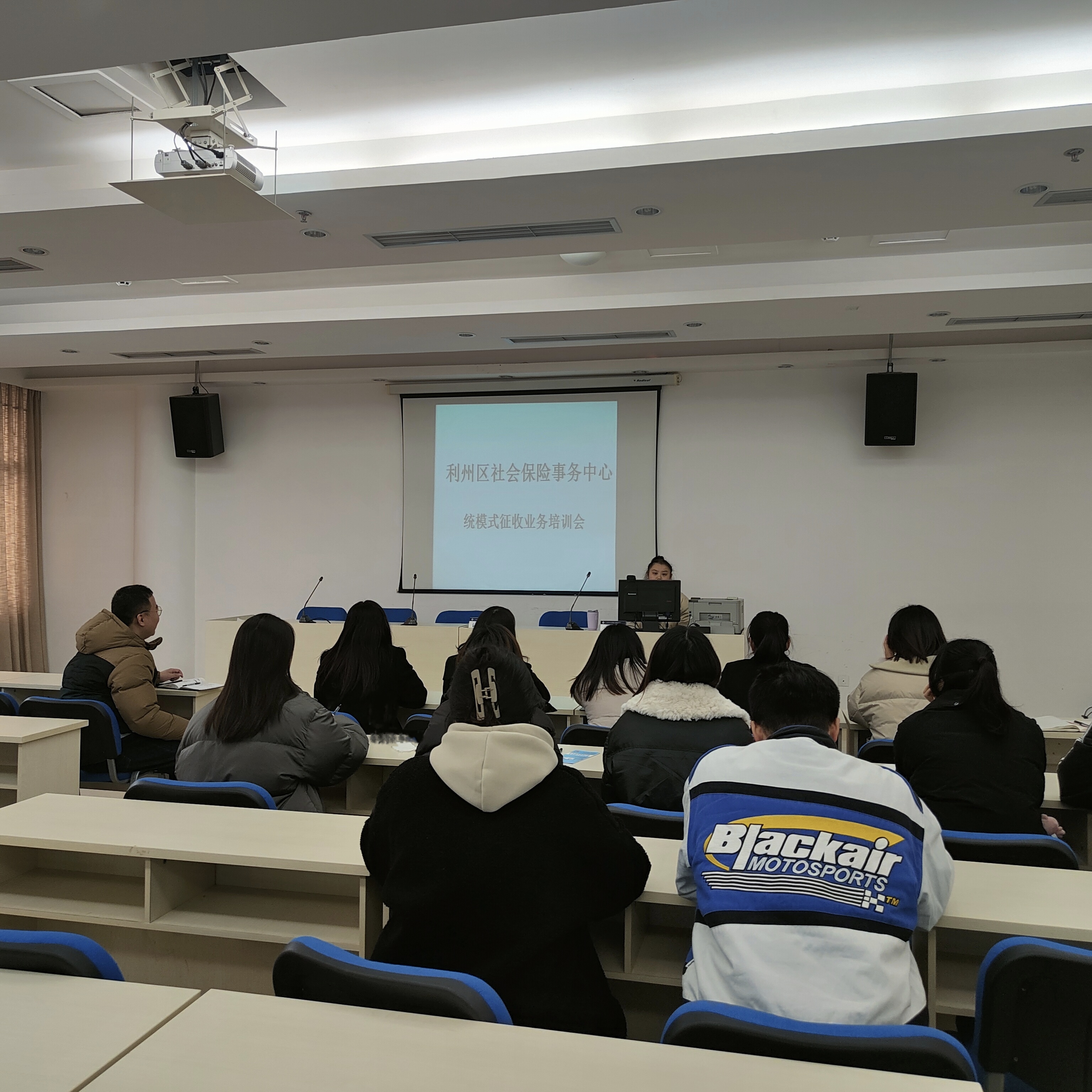2023年12月29日,为确保社会保险费统模式工作在新的一年顺利实施,利州区社保中心组织重点岗位人员召开统模式业务培训会。