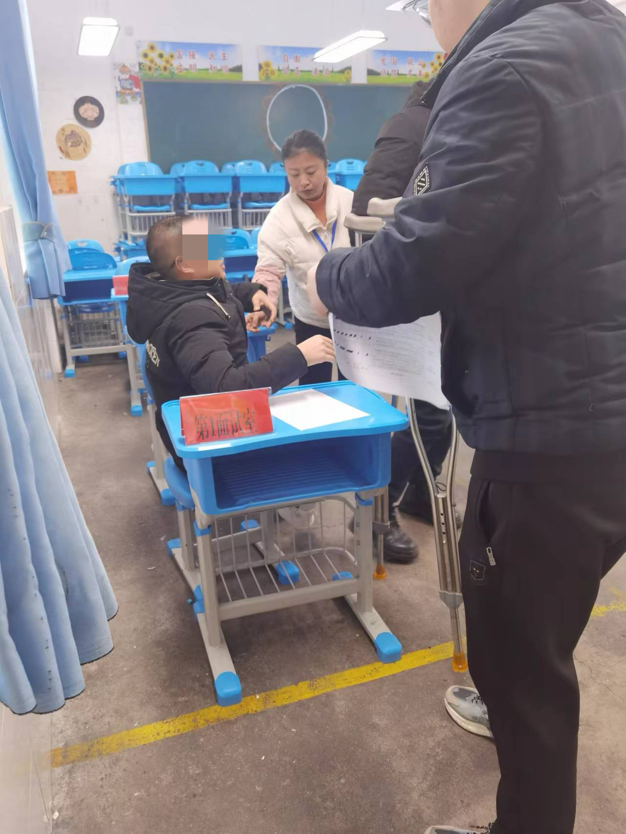“实在是太感谢你们了,给你们添麻烦了,由于我腿部受伤行动不便,很担心能否坚持参考,原本打算放弃考试的,后来在家人的鼓励下就坚持来了,你们让我感受到家人般的温暖,在精心照顾下把我楼上楼下背进背出,顺利完成此次考试,非常感谢你们”。广元市利州区2023年下半年区属国有企业公开引进高层次和急需紧缺人才面试考场上,考生不停的对考务工作人员表达谢意。