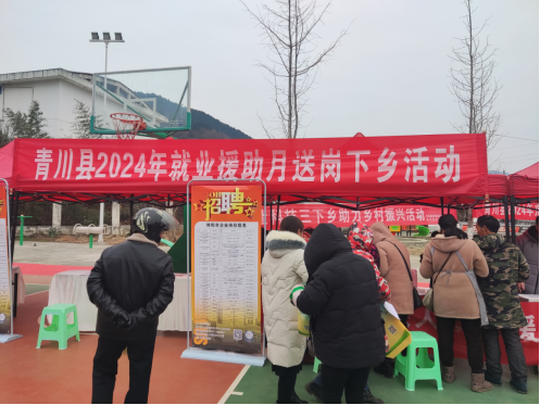 1月24日,青川县人社局抢抓外出务工人员返乡高峰期在沙州镇举办了就业援助月送岗下乡活动。