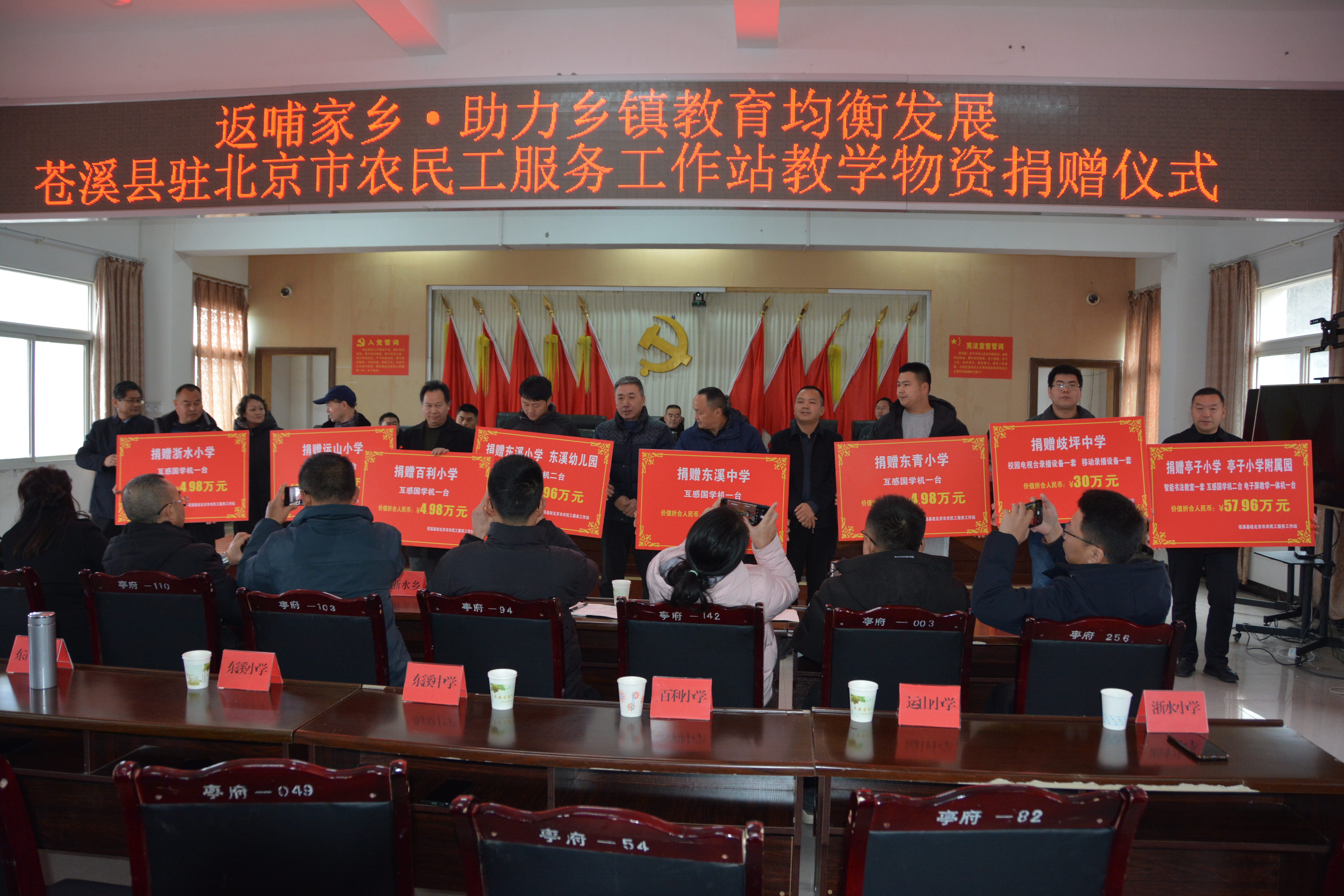1月30日,“返哺家乡·助力乡镇教育资源发展”苍溪县驻北京市农民工服务工作站教学物资捐赠仪式暨春节慰问返乡农民工活动在苍溪县亭子镇举行。